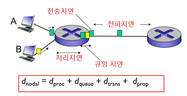 이러한 지연들을 합쳐 전체 노드 지연이라 말하며 데이터 전송 시 지연을 일으키는데,